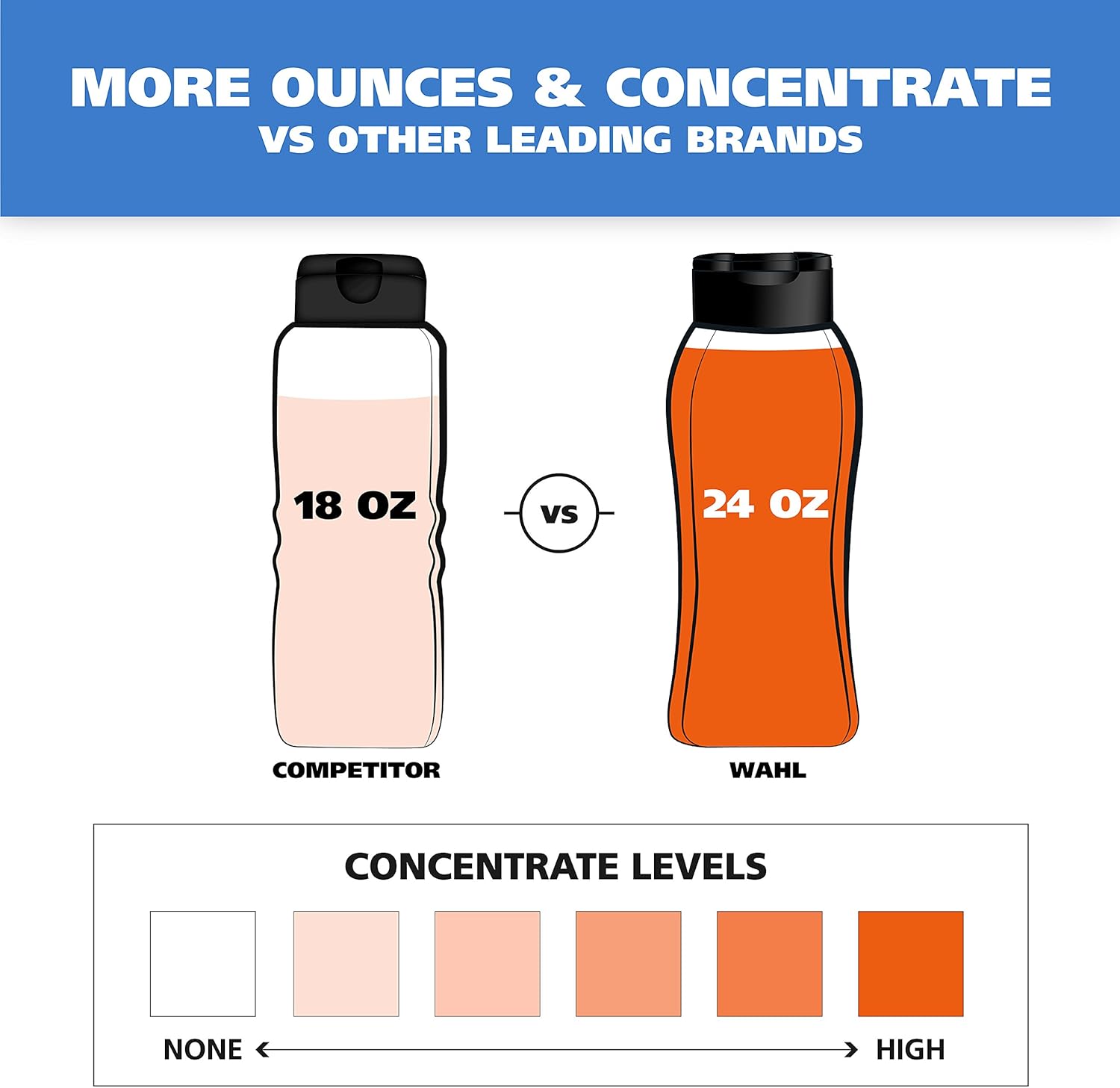 - Less is More - Wahl has a higher concentrate of a coconut-derived sodding agent, which means you don’t have to use as much product as other dog shampoos. A little shampoo goes a long way and provides a rich lather that’s easy to rinse off