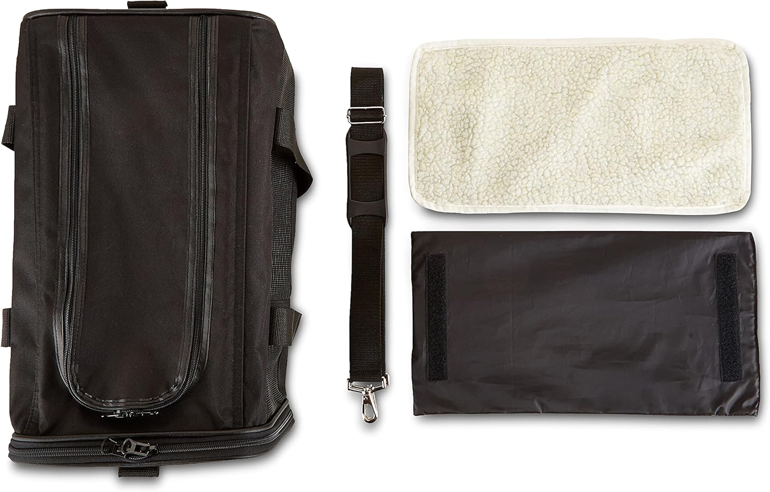 - Includes a Medium soft-sided carrier with a removable, machine washable fleece pad