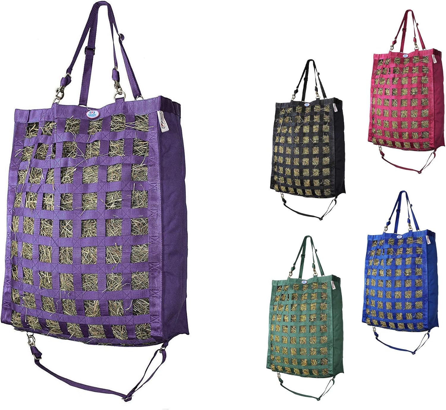 - SUPER TOUGH BOTTOM DESIGN - our exclusive Super Tough Bottom is made of reinforced overlapping nylon webbing. This design allows for superior strength and durability while keeping your hay fresh and allowing dust and debris to exit the bag.
