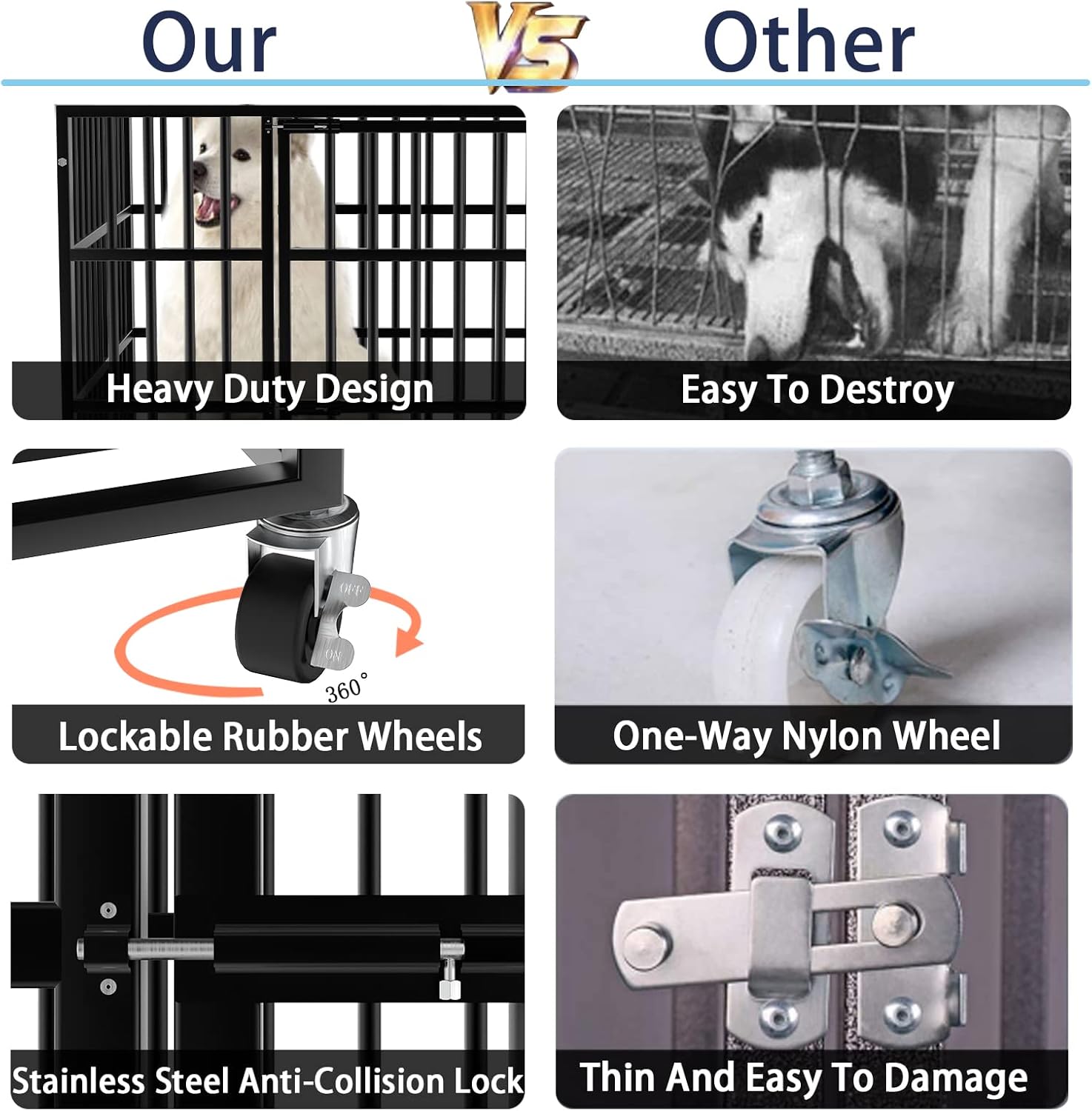 LEMBERI 48/38 inch Heavy Duty Indestructible Dog Crate, Escape Proof Dogs Cage Kennel with Lockable Wheels,High Anxiety Double Door Kennel,Extra Large Crate Indoor for Large Dog with Removable Tray