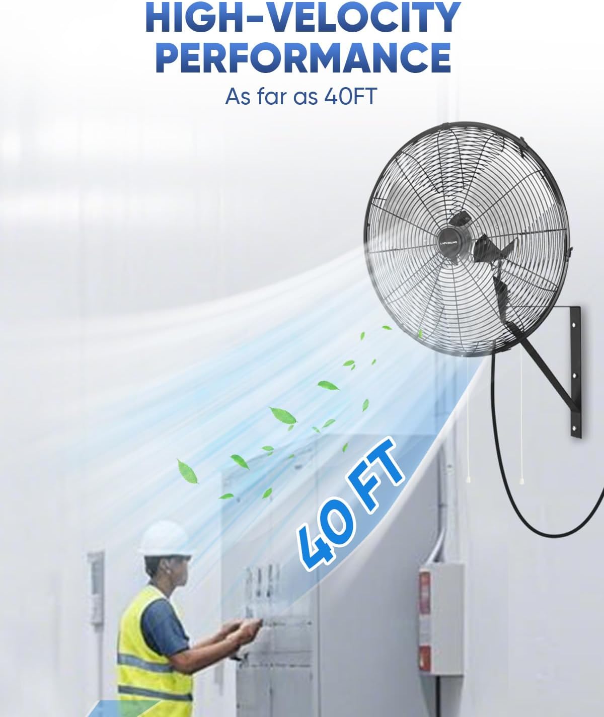 - Durable and Versatile Design. Built for heavy-duty use, this wall-mounted fan is perfect for industrial settings, auto repair shops, and commercial spaces. Its 20-inch size and oscillating feature provide wide coverage, ensuring consistent airflow across the room.
