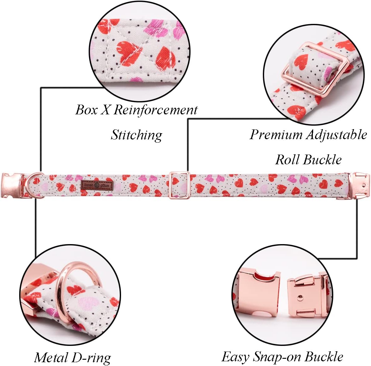 Lionet Paws Valentines Day Dog Collar with Bowtie, Dog Bowtie Collar with Metal Buckle for Dogs, Adjustable Comfortable Dog Collar Girl Boy Gift, L, Neck 16-24 in