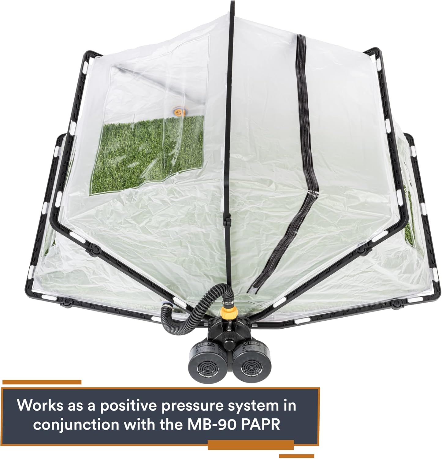 - SUPERIOR PROTECTION - The Ark uses a powered air-purifying respirator (PAPR) to create a compact, protective enclosure for your cherished pets. It is effectively a “dog gas mask,” providing a constant stream of filtered air into the spacious interior. Works as a positive pressure system in conjunction with the MB-90 PAPR (sold separately and required for operation)