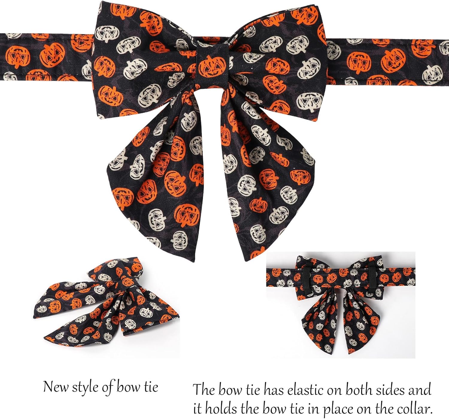 Lionet Paws Halloween Dog Collar with Bowtie - Cute Cotton Adjustable Black Bowtie Dog Collar with Metal Buckle for Small Medium Large Dog Girl Boy Gift, L, Neck 16-24in
