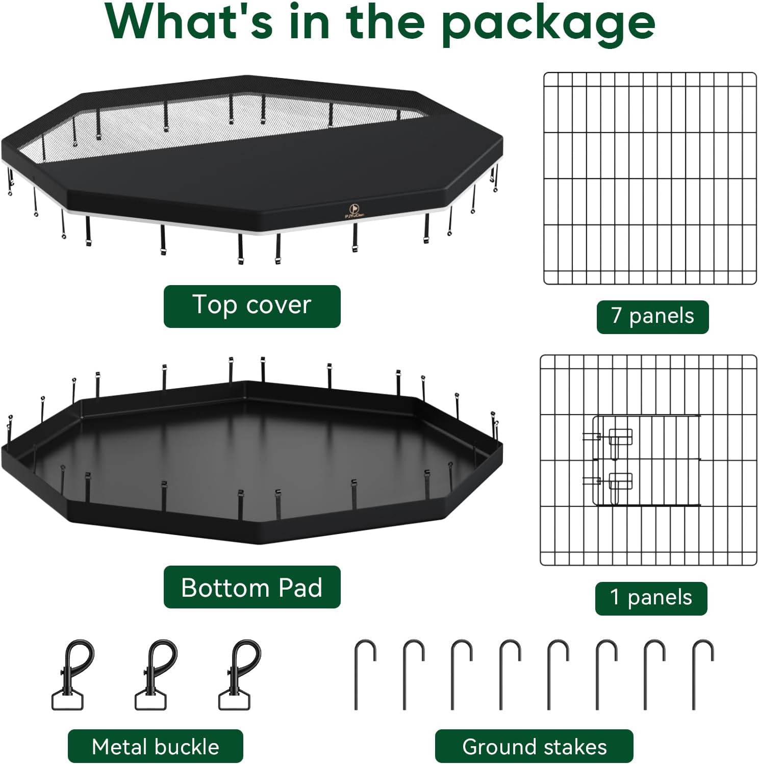 - Adjustable Shape: The PJYuCien dog playpen can be adjusted to different shapes, such as rectangles, squares, and octagons, based on your space. Adjust the playpen size according to your home. When used on grass, the provided ground stakes can be used to secure it. Please note that our bottom cannot change shape.