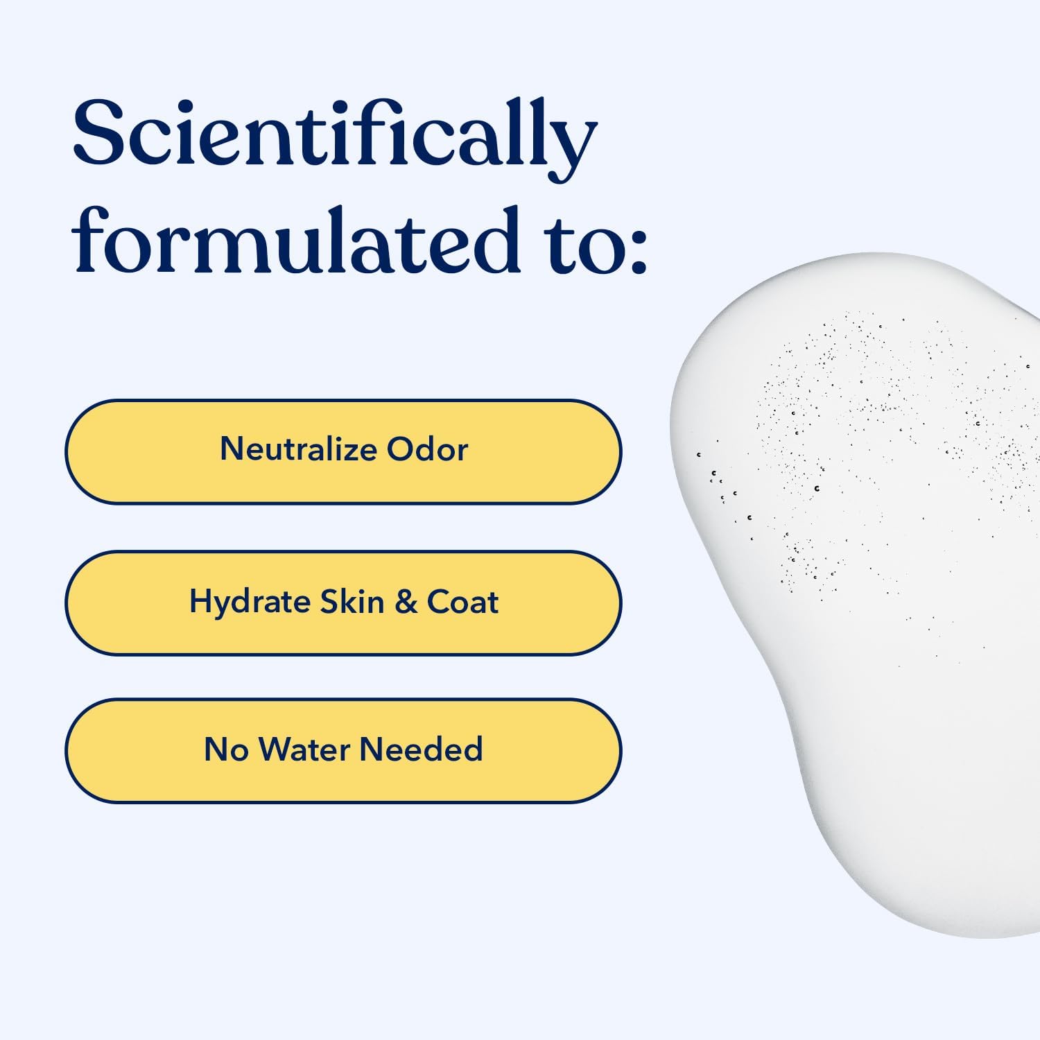 - Product Benefits : Cleanses, Neutralizes odors, Hydrates skin and coat, Nourishes skin, No water required, Free of parabens, sulfates, phosphate, DEA, MEA Cleanses, Neutralizes odors, Hydrates skin and coat, Nourishes skin, No water required, Free of⦠See more