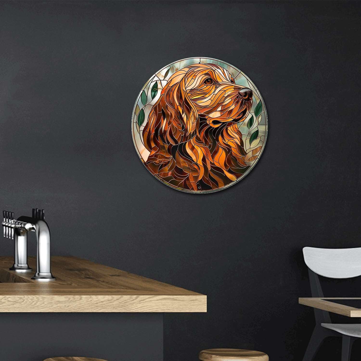 Lygond Metal Sign Tin Sign Circular Stained Glass Dog Funny Gardening Gift for Patio 12×12 Inches