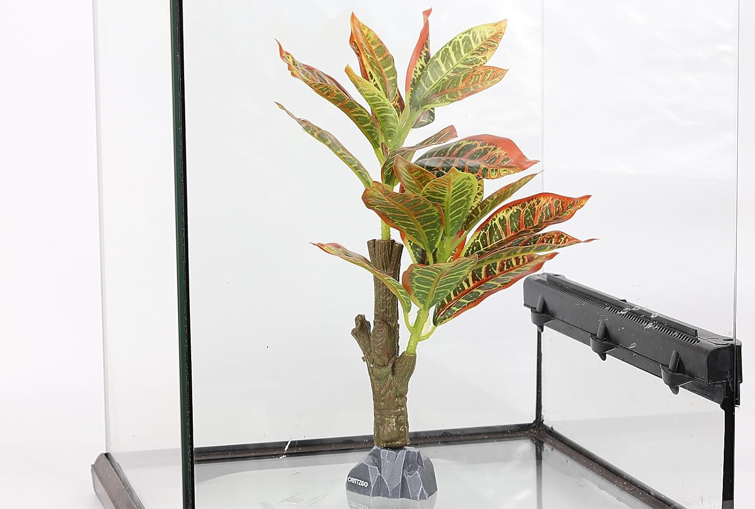 Reptile Terrarium Plants, Bearded Dragon Tank Decor Accessories For Ball Python Leopard Gecko Tree Frog Tarantula Lizard Corn Snake Tortoise Chameleon Crested Gecko - Fake Codiaeum Variegatum