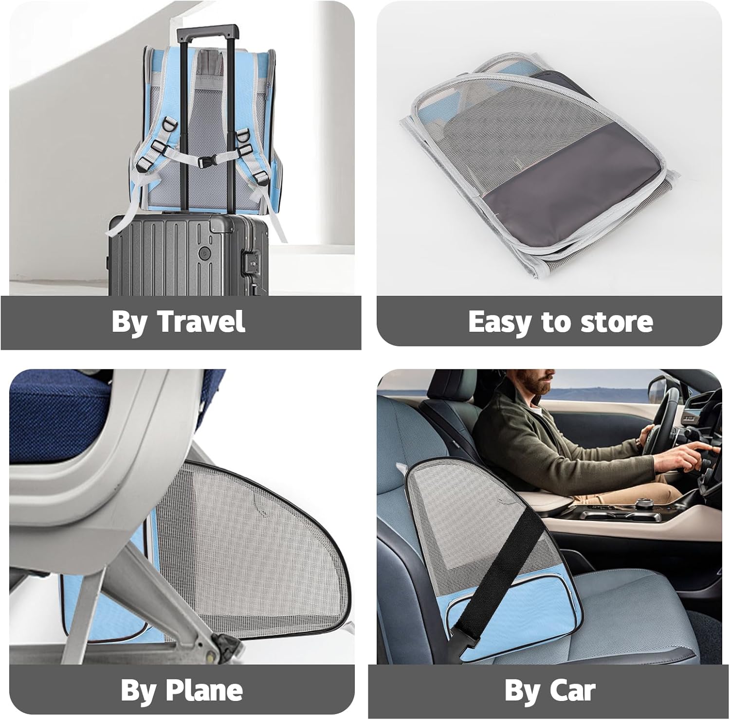 - Foldable and Portable: You can easily fold up your cat carrier backpacks when not in use and it will only take up very little space. This pet travel carrier can be conveniently worn over the shoulders, secured in a vehicle with a seat belt, positioned on your luggage, or carried using the top handle