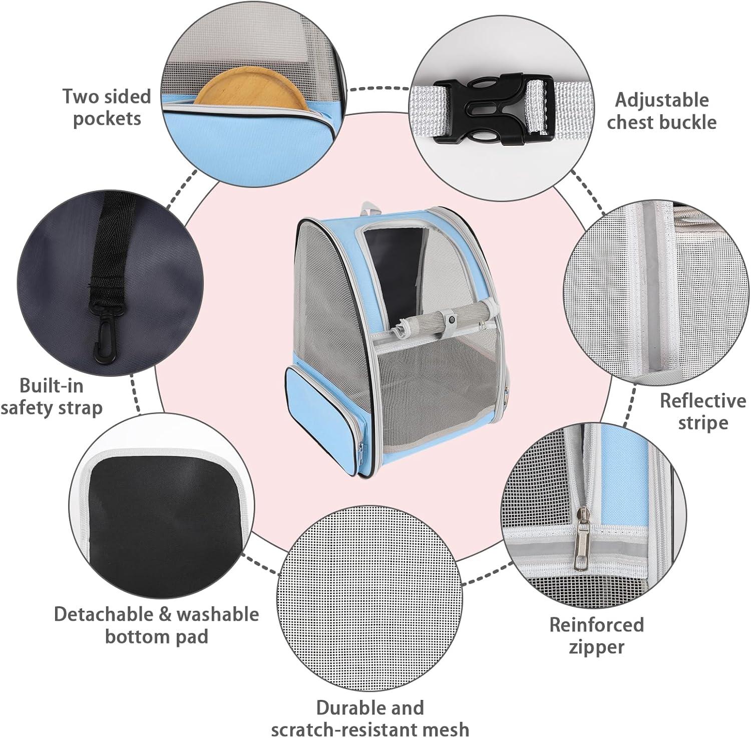 - Ventilated Mesh and Comfortable: Three-sided PVC mesh design ensures excellent air circulation and visibility, you can clearly view the status of pets inside the bag, and pets can also observe the outside. And this cat carrier backpack is firmly structured, providing ample room for your pet to move around