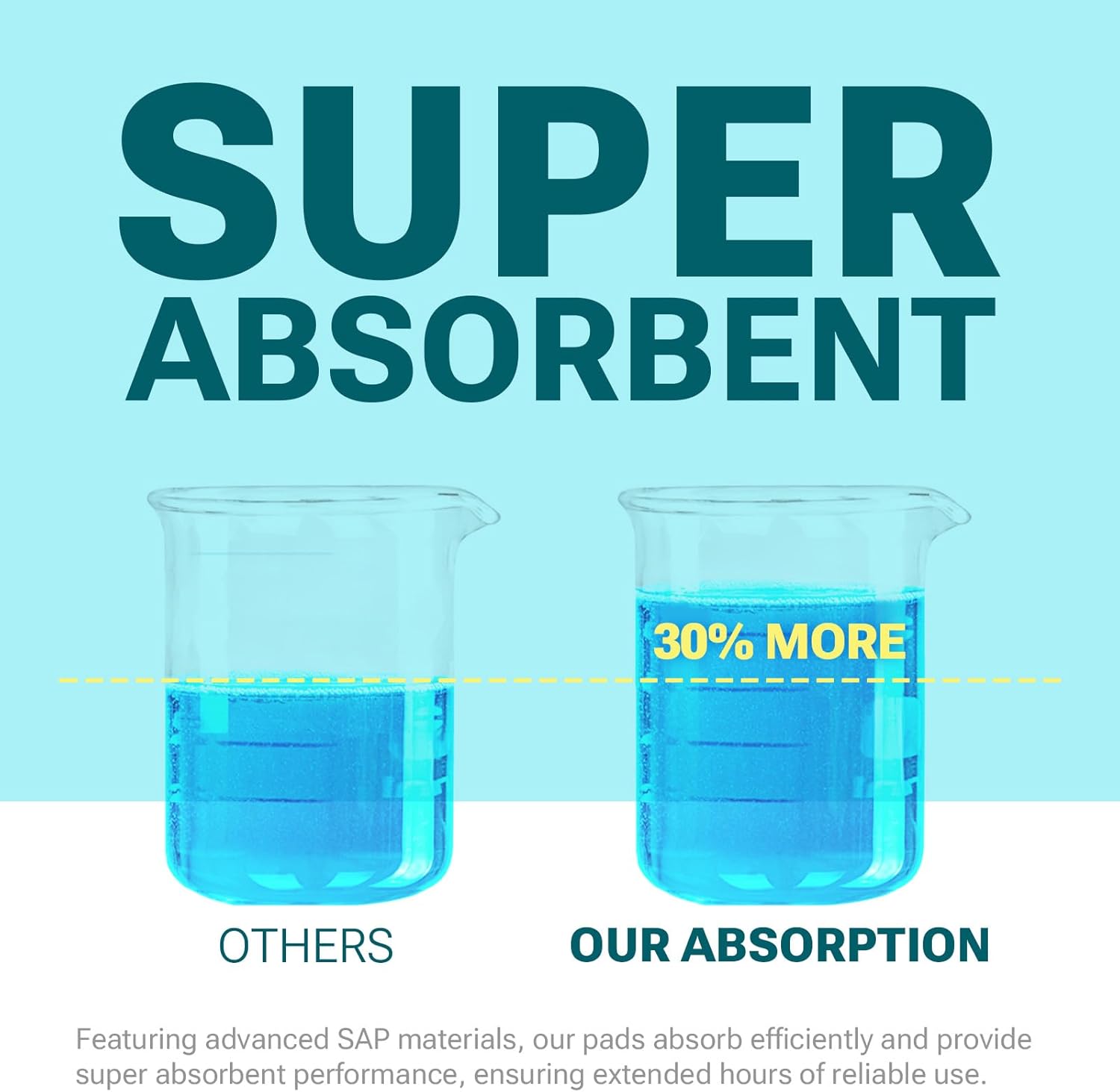 - Ultra-Absorbent Core - 30% Faster: Advanced SAP tech absorbs liquid 30% faster than standard pads, providing up to 12 hours of reliable, leak-free protection.