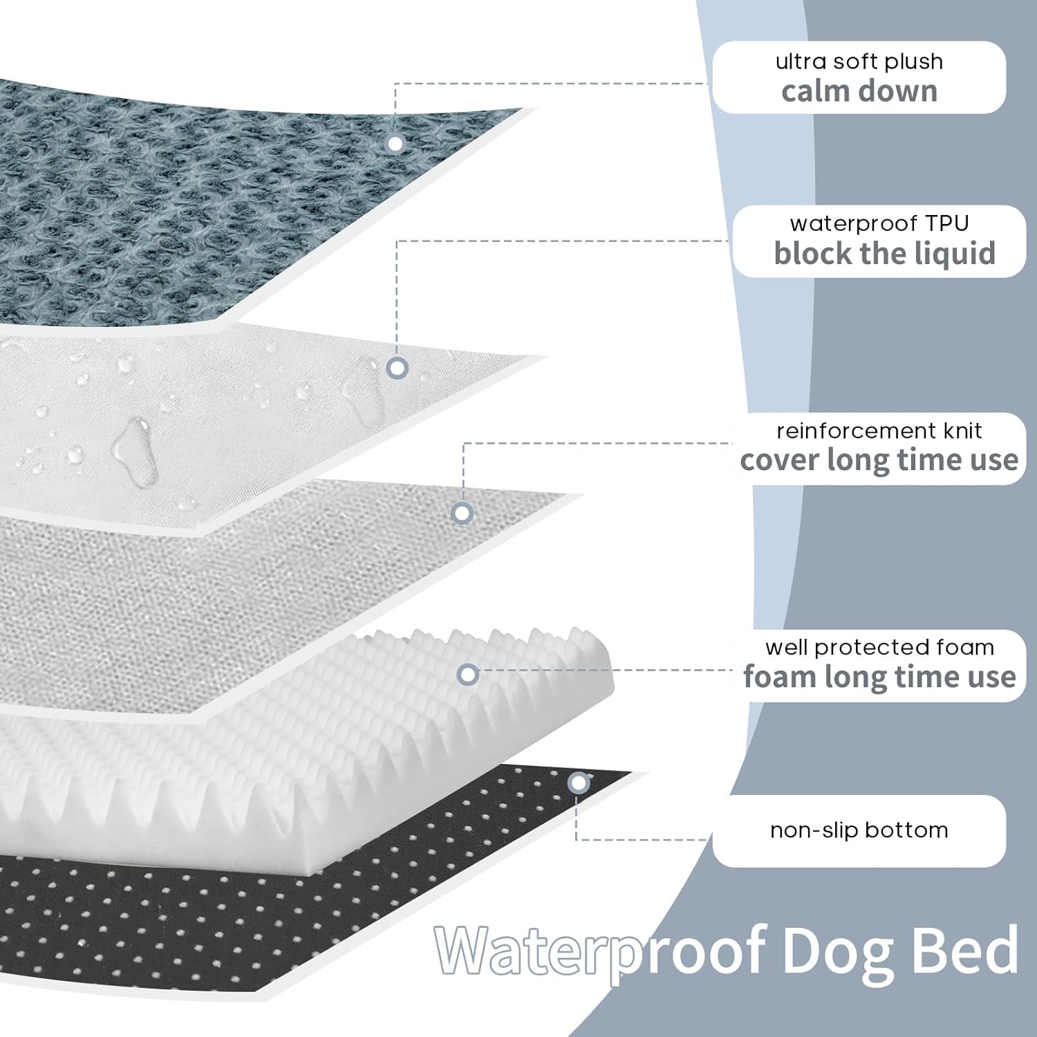 - Luxurious Waterproof Plush: Your dog will love the ultra-soft, velvety plush surface that feels warm and cozy year-round. The plush fabric features a waterproof backing to protect the foam core from accidents and spills.
