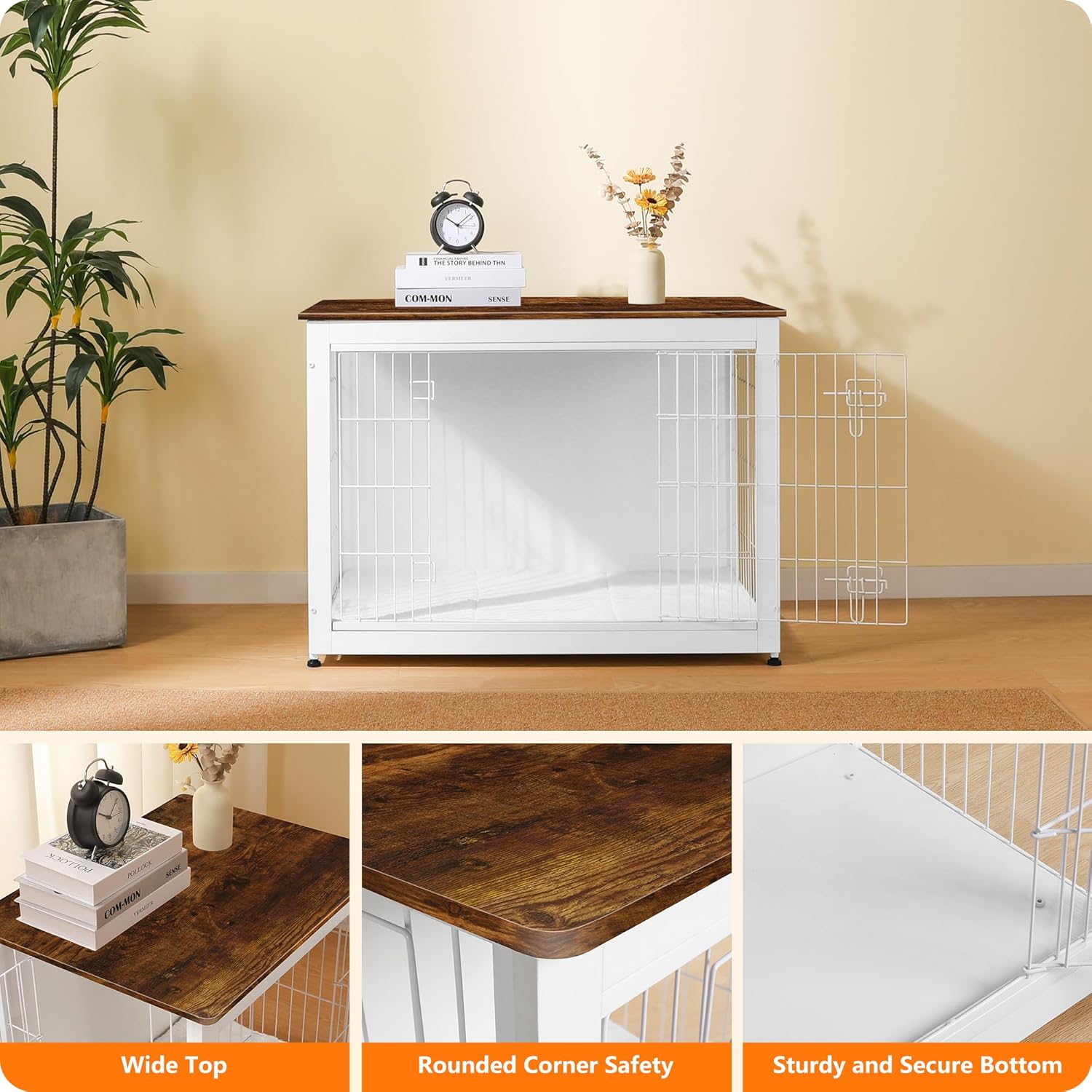 - 【Multi-functional】 This pet furniture can be used as pet crate ,also as a side table, end table or night stand.The wide top provides enough place to put some decorations such as small/medium plant, magazines, family picture frames and night lamps and so on.