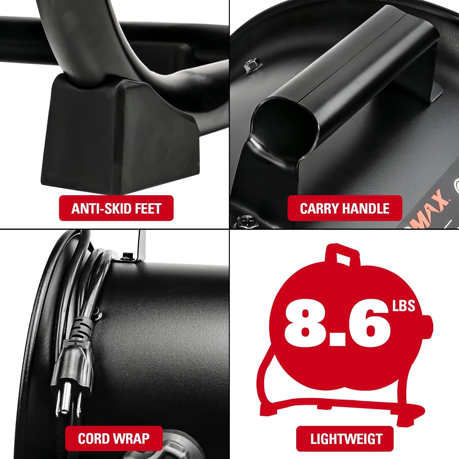 - 【Sturdy & Portable Design】 Built with a durable metal construction and aluminum blades, this high-velocity fan offers long-lasting performance, making it a reliable investment. A convenient carry handle allows for effortless transportation, and the 6.5 ft cord wrap ensures easy storage
