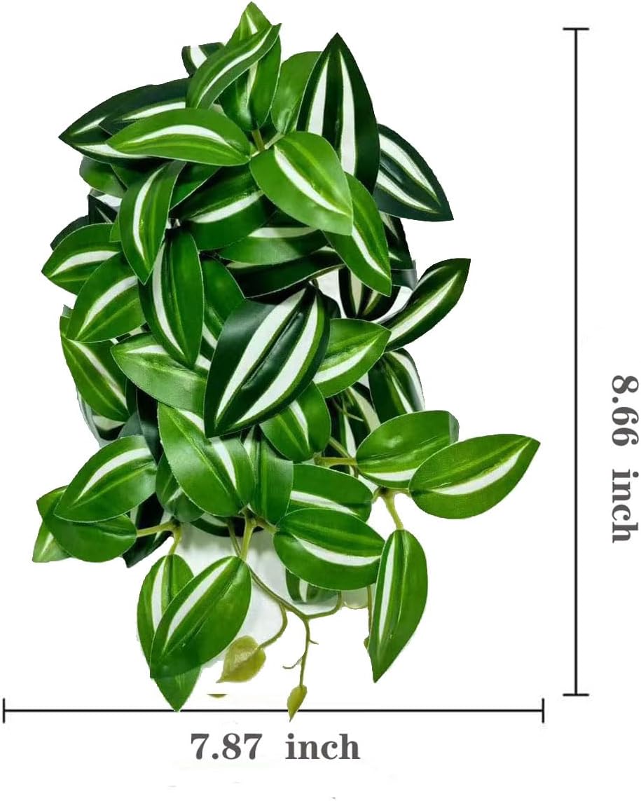 Reptile Plants for Terrarium Decor, Amphibian Habitat Decor, Snake Tank Accessories, Artificial Hanging Plants with Suction Cup-2 Packs (Zebrina Green)