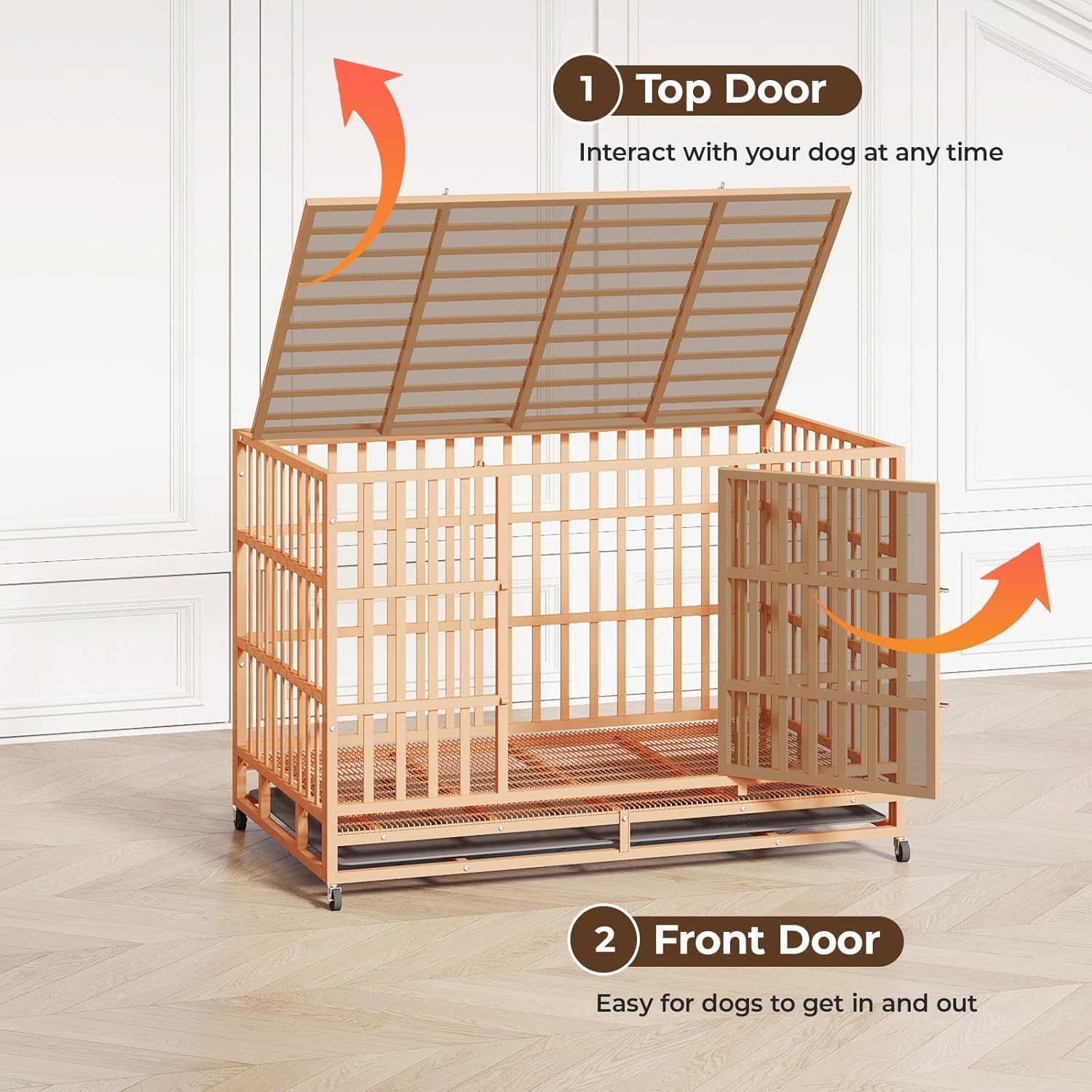 - Double Door Lock Design:The front door allows easy access for pets to enter and exit, while the top door provides a convenient way to interact with or feed your dog. Both doors feature secure locking mechanisms to prevent any escapes.