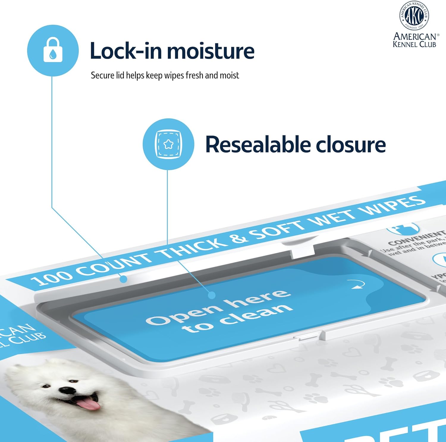 AKC Pet Wipes for Dogs & Cats – Hypoallergenic, Alcohol-Free Wipes for Paws, Face, Ears & Coat – Thick, Gentle Cleaning with Natural Aloe – Available in Lavender, Fresh & Oatmeal Scents
