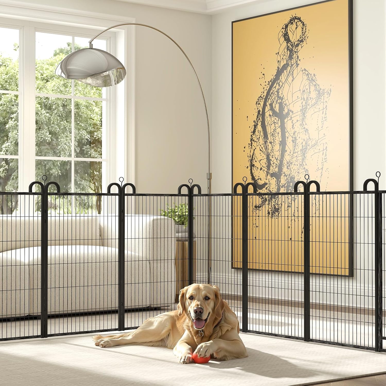 - 【Safe Enclosed & Expandable Area】The heavy-duty dog pen is sturdy and durable, pet fence provides a safe enclosed area for your pups play, run around and get the exercise they need, each panel is separate, which can be combined repeatedly for larger square footage, this temp fencing makes potty and house training much easier