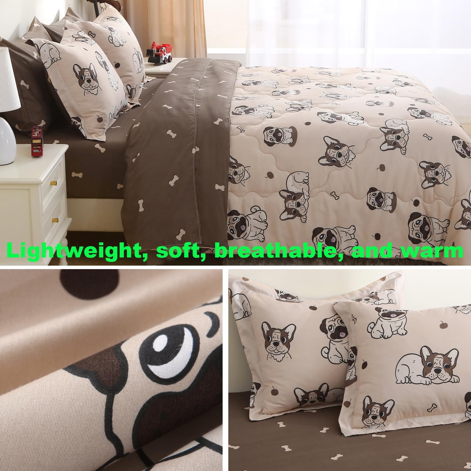 Kids Comforter Set 7 Piece Bedding Cute Dog Cartoon Animal Bed Microfiber Comforter Queen Size All Season (1 Comforter, 1 Flat Sheet, 1 Fitted Sheet, 4 Pillowcase)